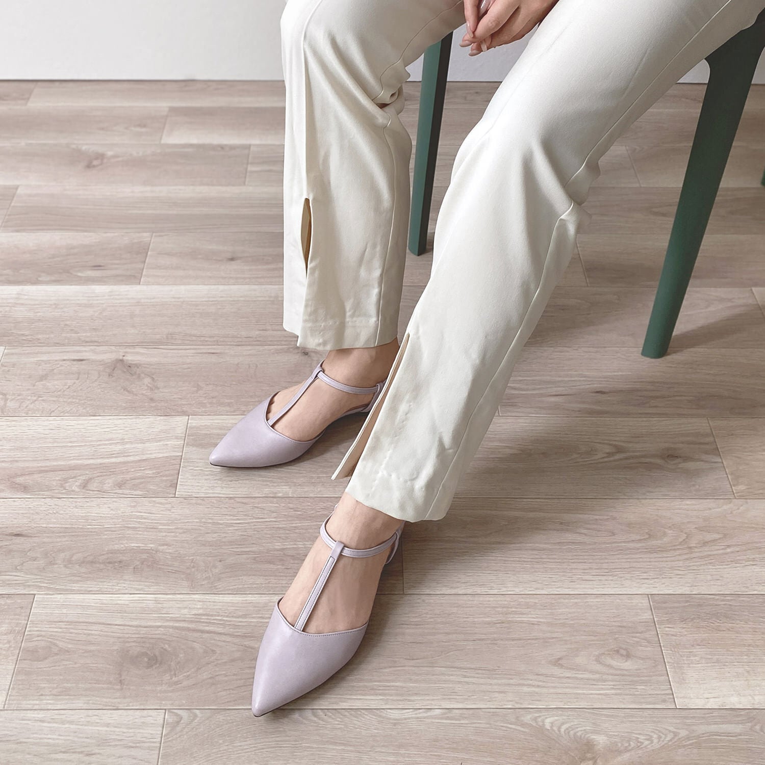 【OT3664】Tストラップ フラットシューズ :ラベンダー 25.0cm【一部難あり】