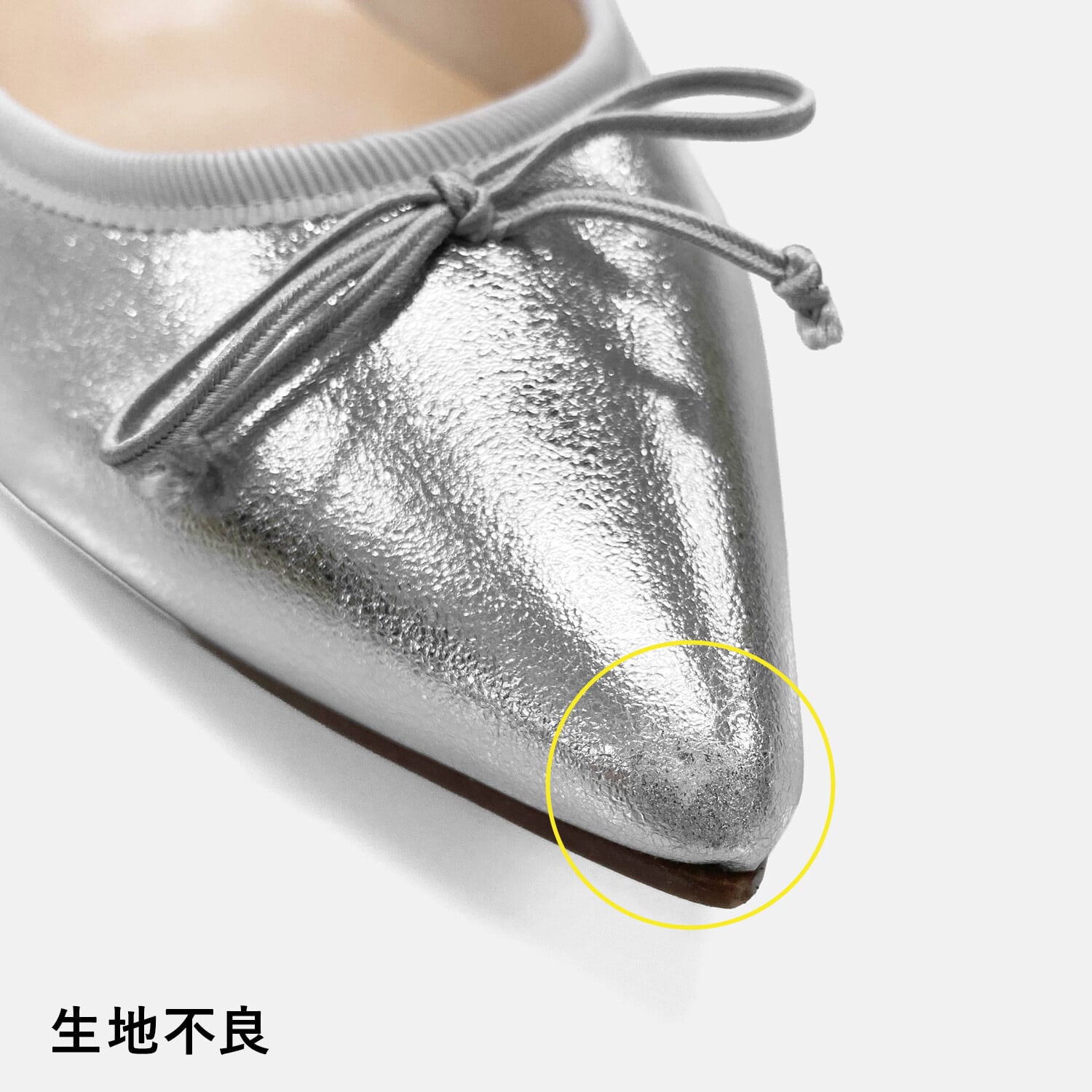 【OT3684】ポインテッドトゥ フラット バレエシューズ:シルバー 23.5cm【一部難あり】