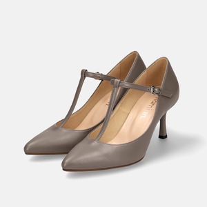 【OT3710】Tストラップ パンプス 7cmヒール:グレージュ 22.5cm【一部難あり】