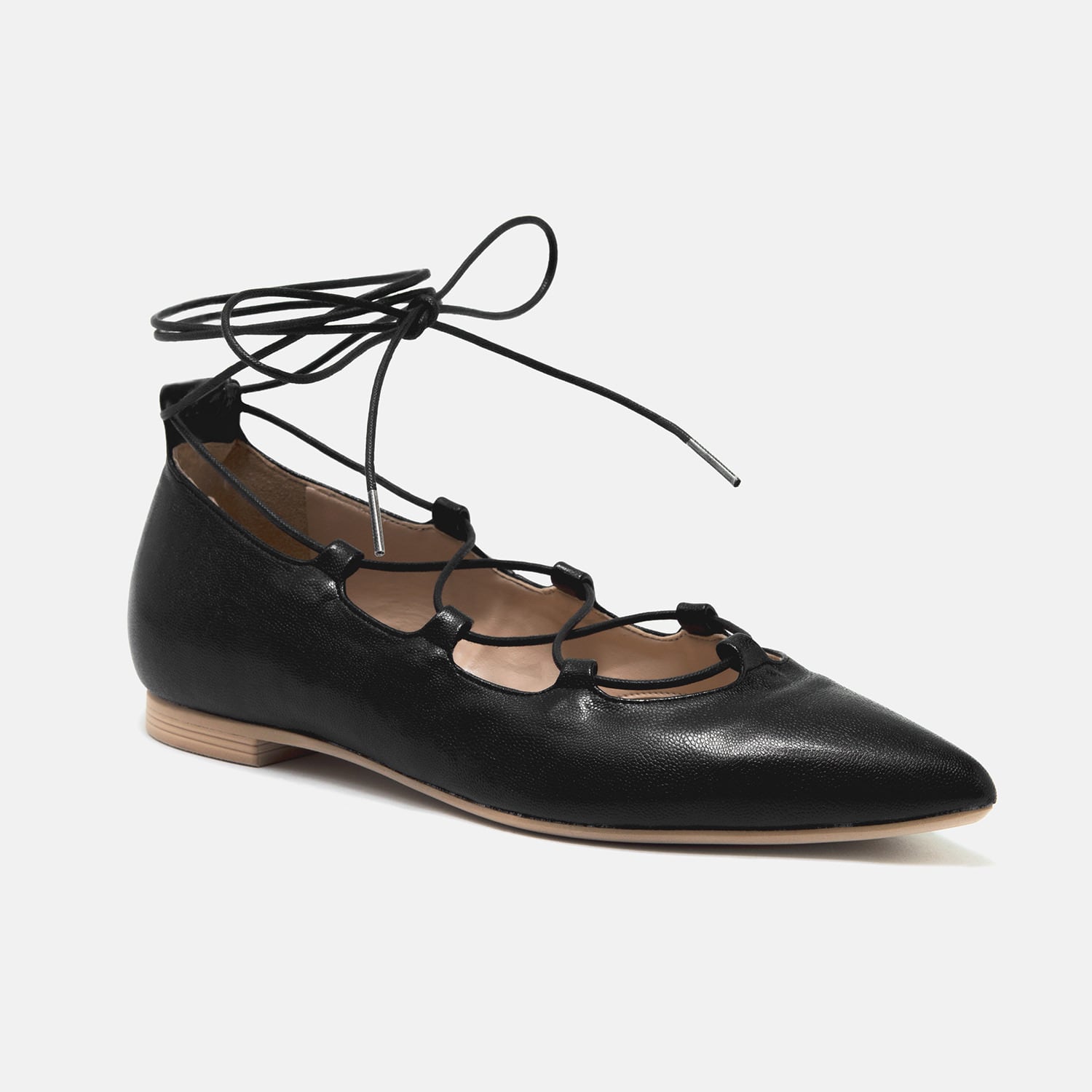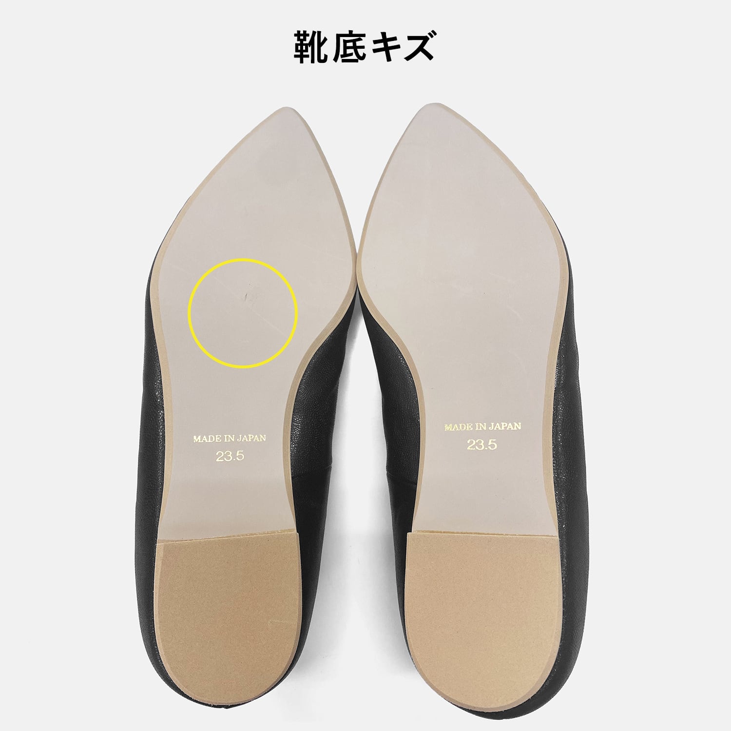【OT3719】レースアップ ポインテッドトゥ フラットシューズ:ブラック 23.5cm【一部難あり】