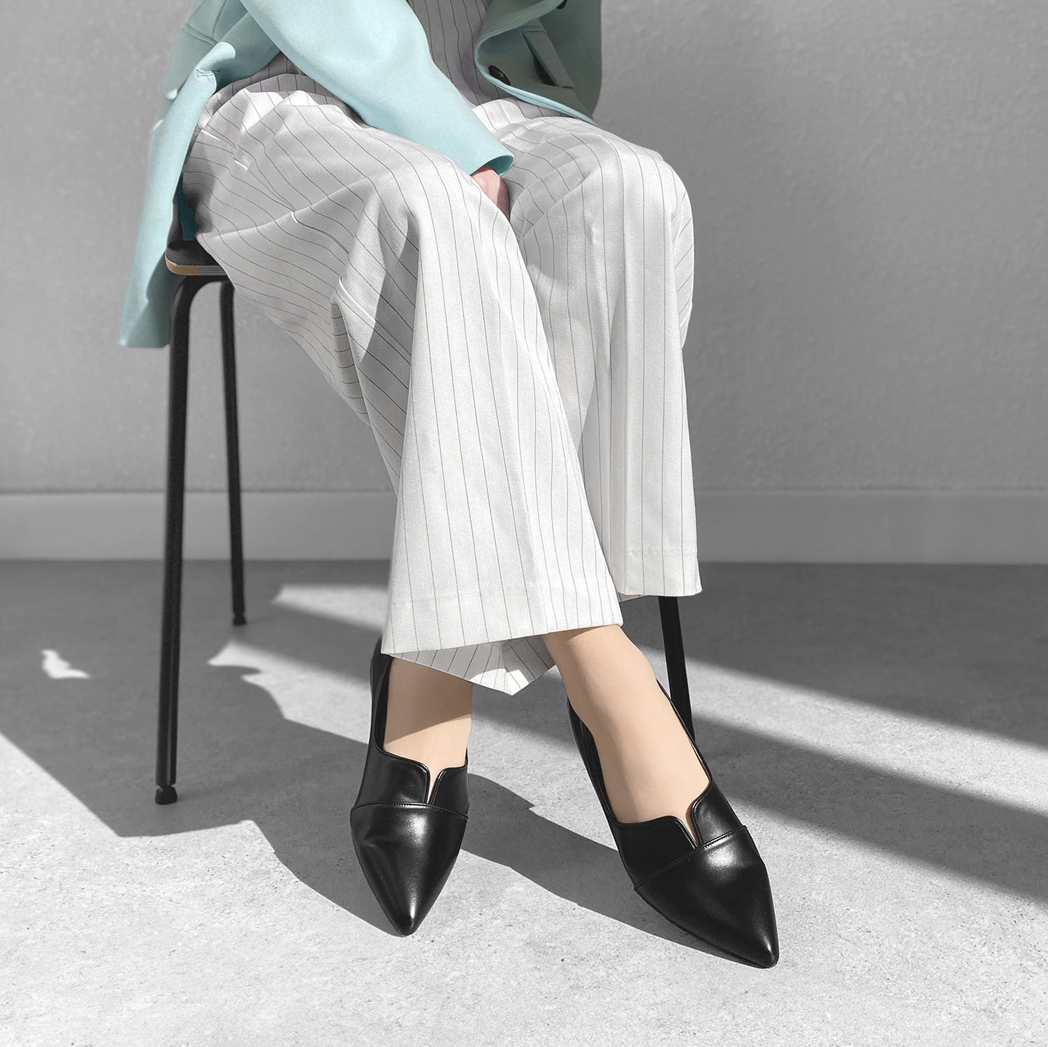 【OT3722】ポインテッドトゥ フラット 切替ドレスシューズ:ブラック 22.5cm【一部難あり】