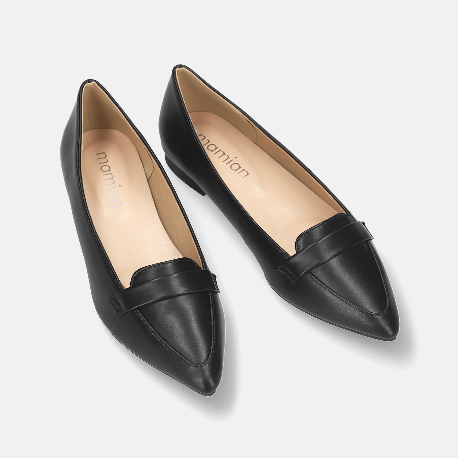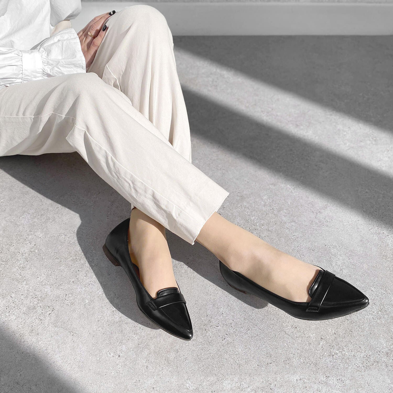 【OT3723】甲浅ポインテッドトゥ ローファー:ブラック 23.5cm【一部難あり】