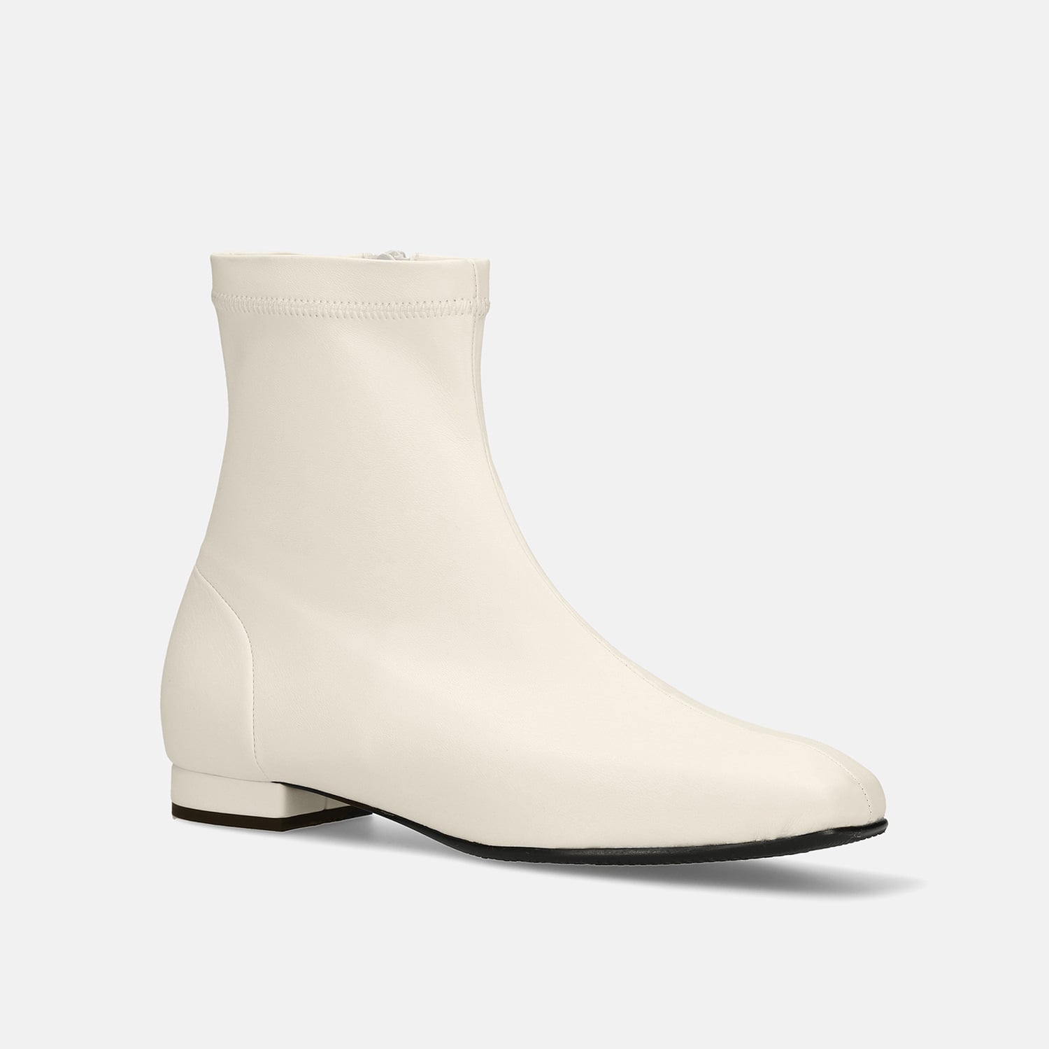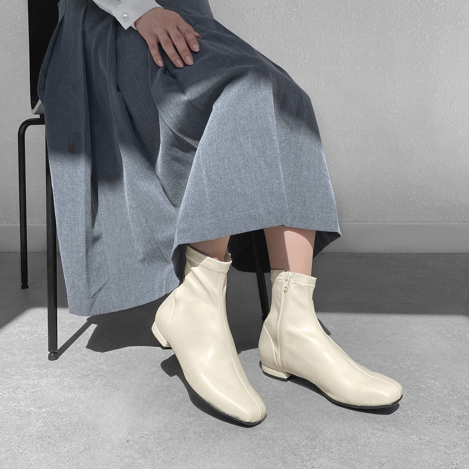 【OT3731】ワイドスクエアトゥ ストレッチ フラット ブーツ:ホワイト Mサイズ【一部難あり】