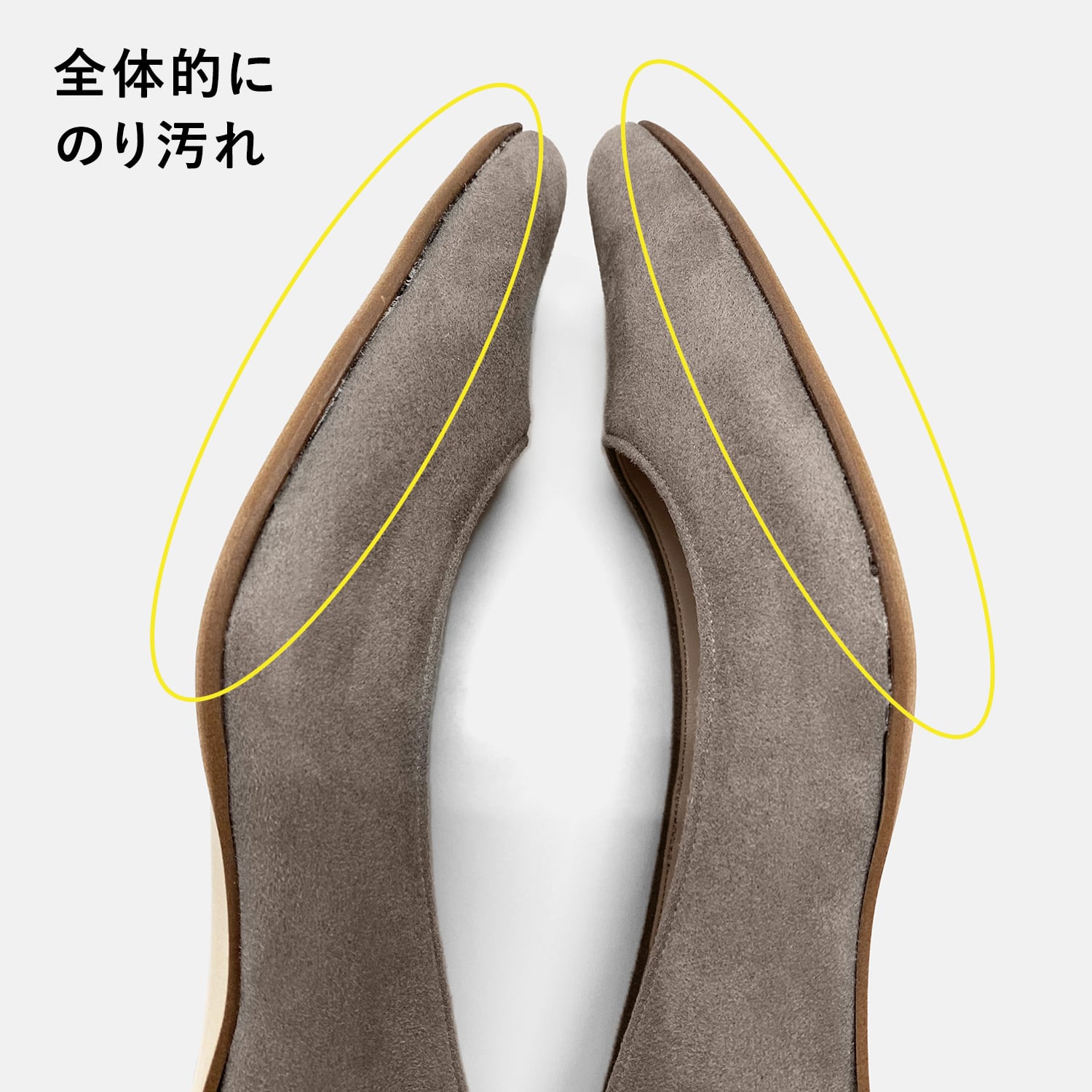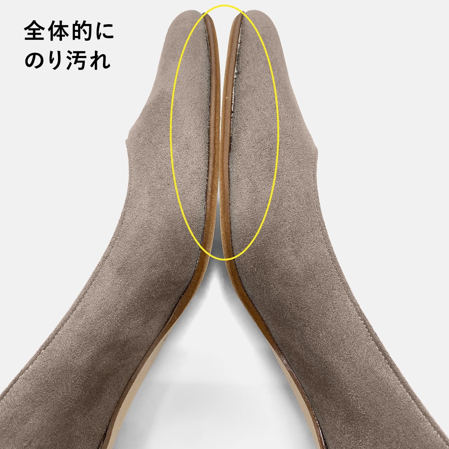 ・両足ソール 接着不良・のり汚れ(画像3〜4枚目参照)