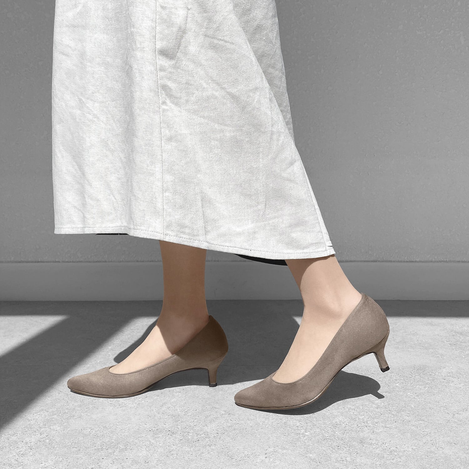 【OT3732】ポインテッドトゥ スエード パンプス:グレージュS 22.0cm【一部難あり】
