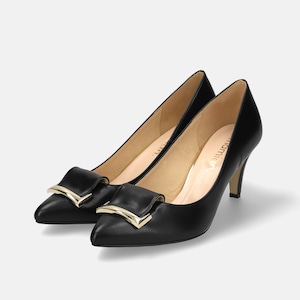 【OT3739】バックルリボン付き アーモンドトゥ パンプス:ブラック 24.5cm【一部難あり】
