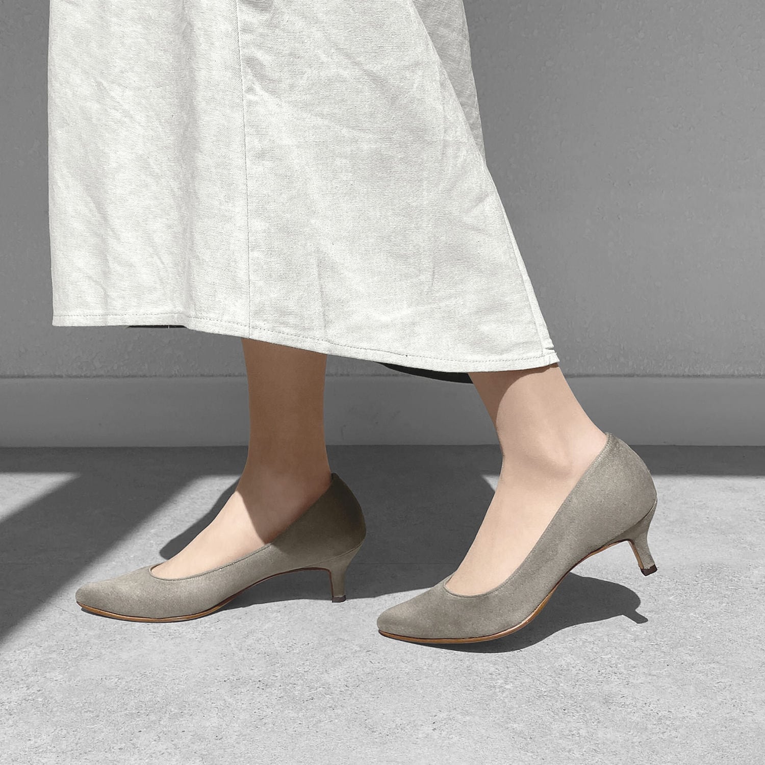 【OT3740】ポインテッドトゥ スエード パンプス:グレージュS 22.0cm【一部難あり】