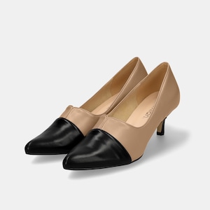 【OT3741】ポインテッドトゥ 切替 パンプス:ベージュ/C 24.5cm【一部難あり】
