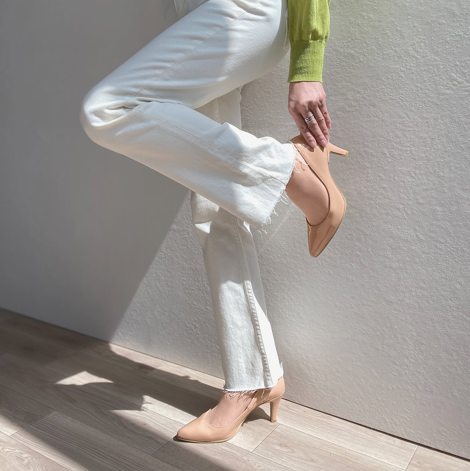 【OT3749】ポインテッドトゥ パンプス:メルティコーラル 24.5cm【一部難あり】