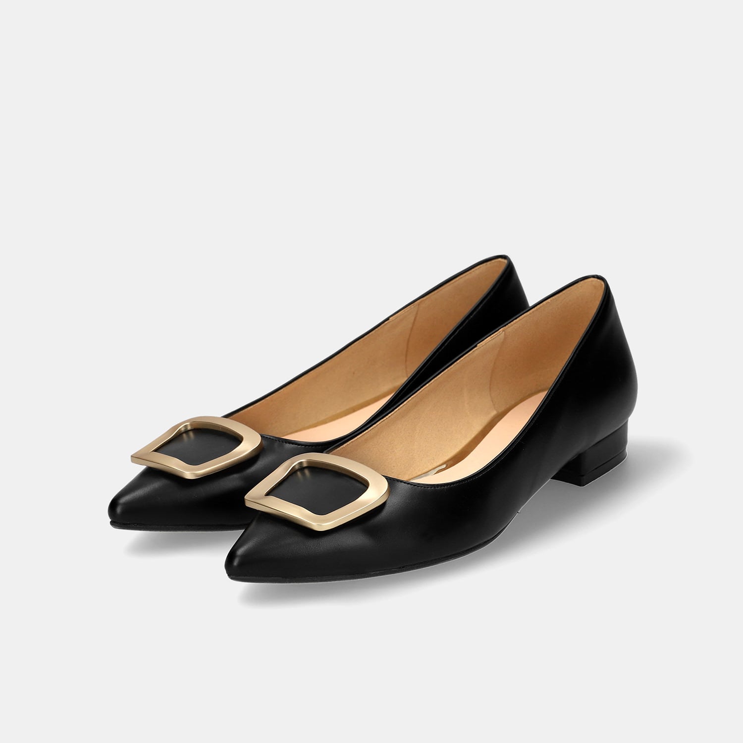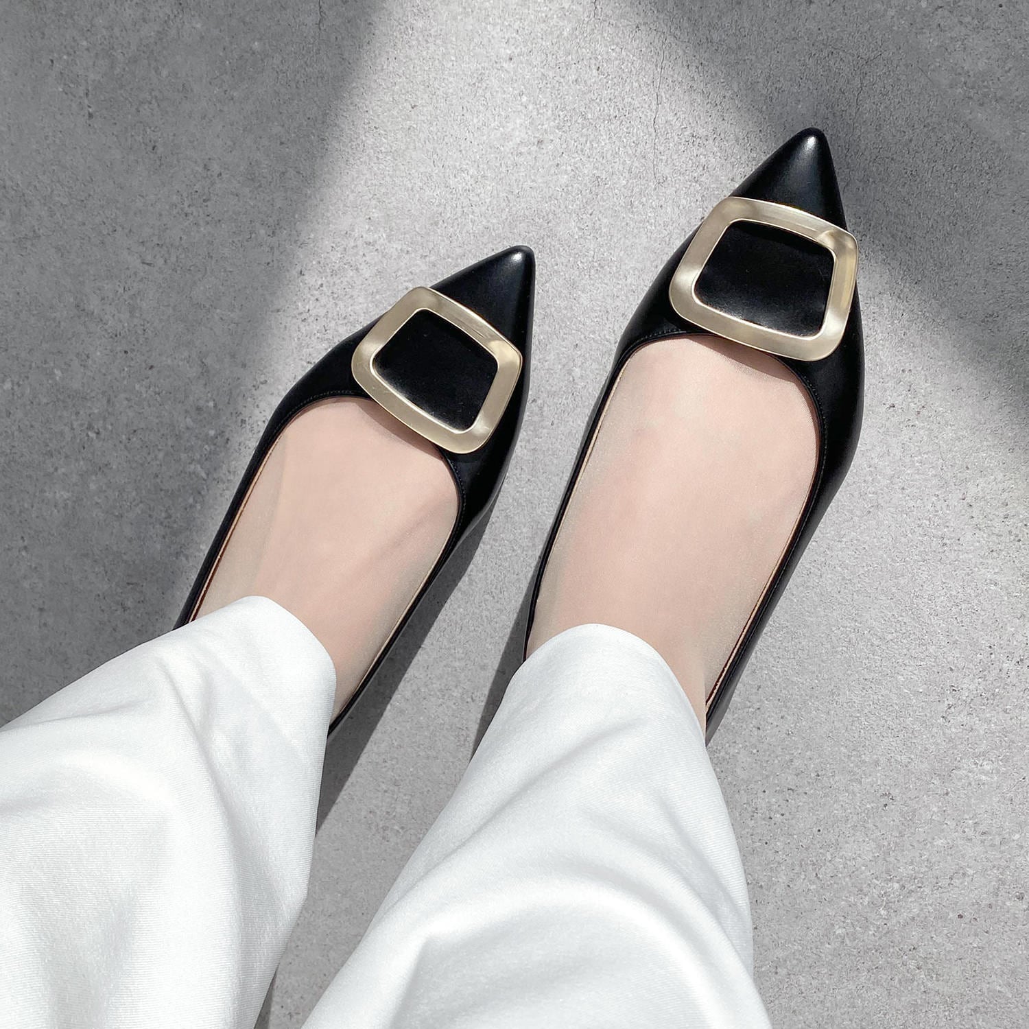 【OT3765】ポインテッドトゥ バックル付き フラットシューズ:ブラック 23.0cm【一部難あり】