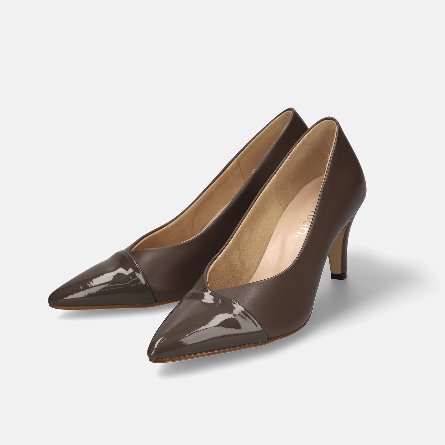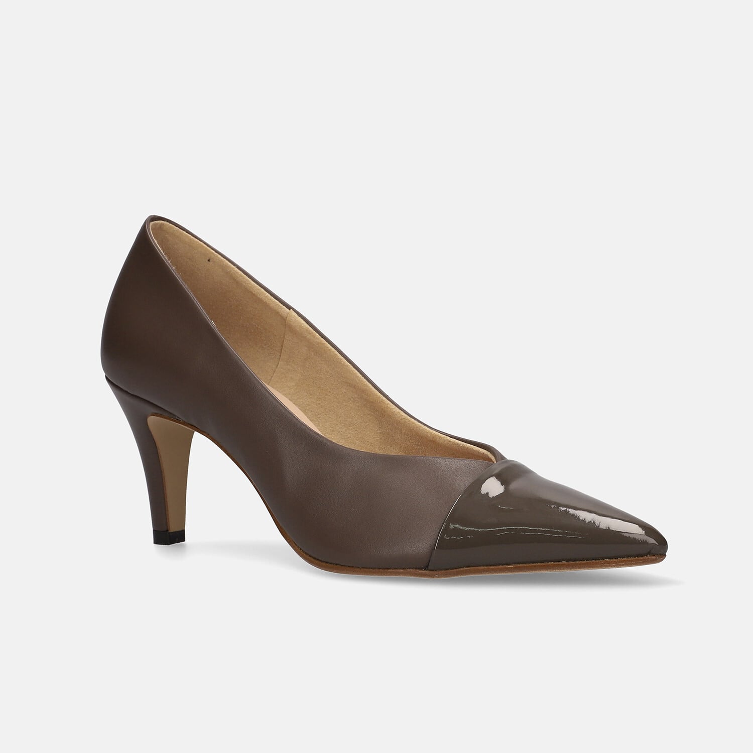 【OT3769】Vカット&トゥキャップデザインパンプス:ダークブラウン/C 23.0cm【一部難あり】