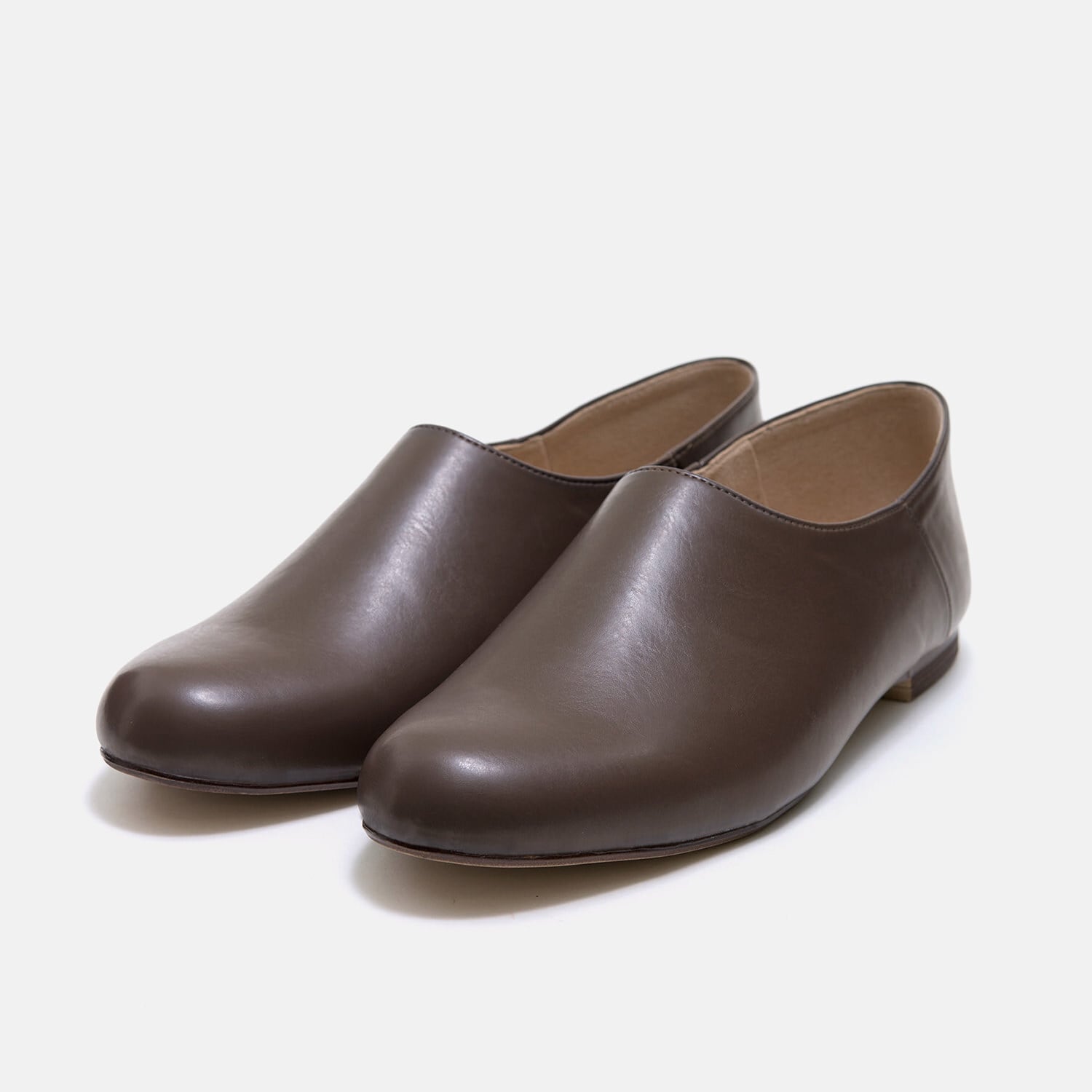 【OT3042】ラウンドトゥフラットシューズ:ブラウンスムース LLサイズ【一部難あり】